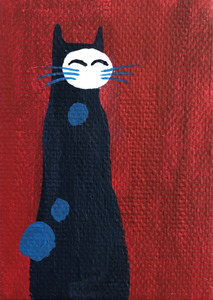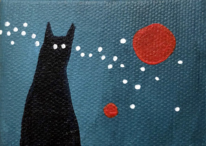 2019Minischilderijtje (5x7 cm) van een zwarte kat