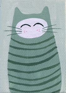 2020Minischilderijtje (5x7 cm) van een roodgestreepte kat.